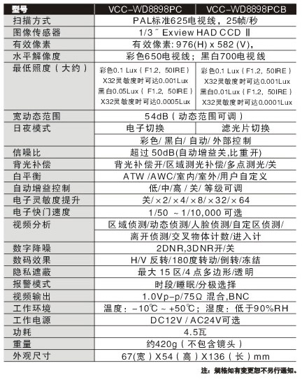 在使用传统摄像机监视窗户、门和其他强背光区域时,画面可能会呈现无特征的黑色和透明白色。然而,应用新开发的宽动态范围技术,则可以使用两个快门速度(一个为1/50秒正常速度,另一个为高速快门速度)拍摄图像,然后在两个画面中分别提取明亮和阴影部分,再将它们合成,从而可录制更清晰的目标图像。