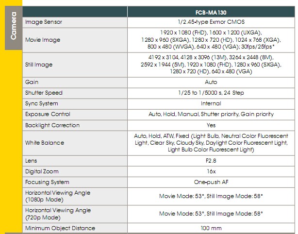 The FCB-MA130 features several other useful functions, including embedded Image Stabilizer and Face Detection, thanks to Sony’s original image signal processor.