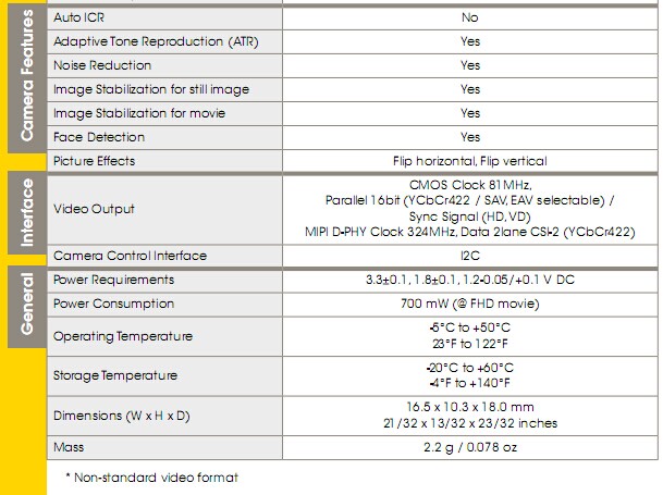 In addition to these technologies, picture quality is optimized by precise adjustment previously developed by Sony during production of mobile phone camera