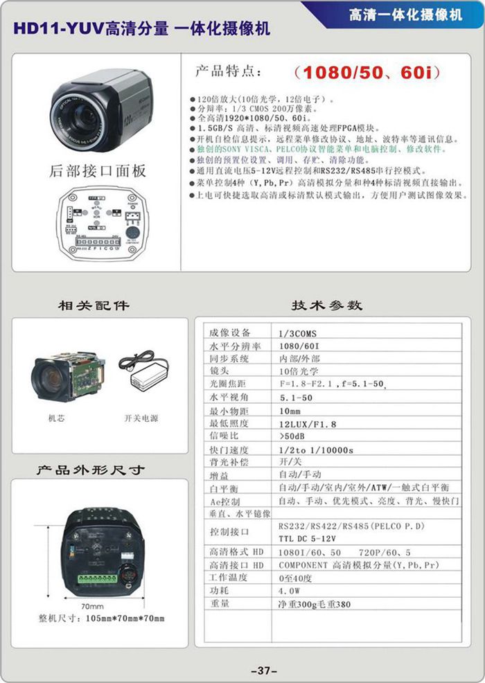 ☆ 高清一体化摄像机,有效像素可达200,0000万像素