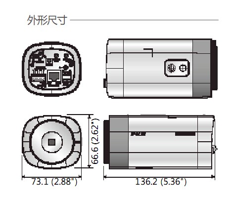 | 视频输出 | CVBS : 1.0 Vp-p / 75Ω复合, 720x576(P), 用于摄像机安装调试 - DIP 连接类型